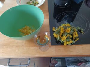Gå ud en solskinsdag og pluk hovederne af mælkebøtterne et sted hvor der ikke bliver sprøjtet. Skænk dig et glas vin hvis du er til den slags og pil det gule fra så du har en stor håndfuld. Mens du piller kan du spise lidt af det grønne der ellers sorteres væk. Det er bittert, og bitter er godt for leveren, især her om foråret.